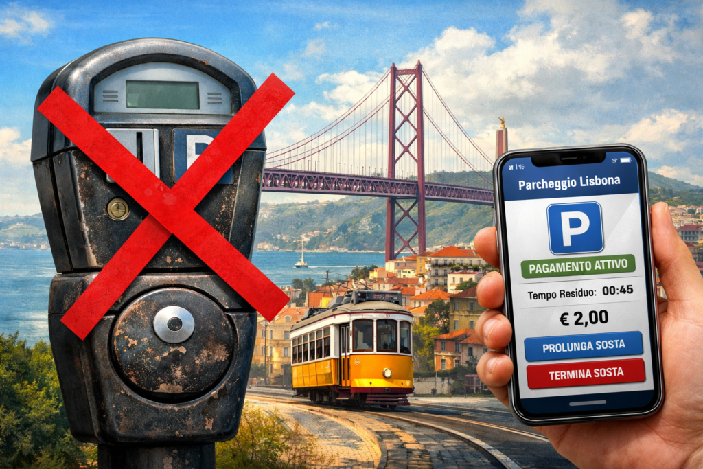 A Lisbona i parchimetri potrebbero presto sparire. La capitale portoghese sta infatti preparando una vera rivoluzione nel sistema di parcheggio, con l’obiettivo di eliminare progressivamente i dispositivi fisici e passare a un modello completamente digitale.